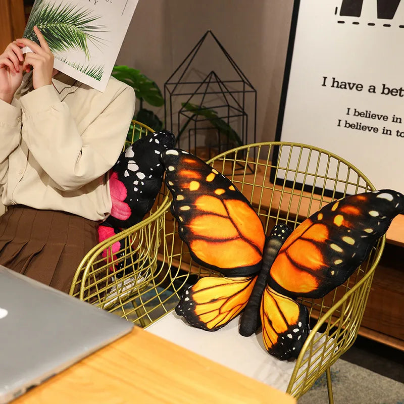 Brighten up your home, bedroom, or reading nook with this cheerful 40 × 50cm butterfly plush cushion—a soft, decorative throw pillow available in a selection of vibrant colour schemes.