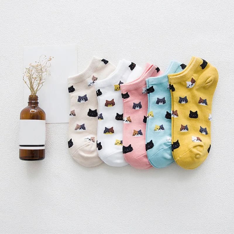 5 Pairs Women’s Cat Print Socks – Cute & Comfy Ankle Socks for Everyday Wear