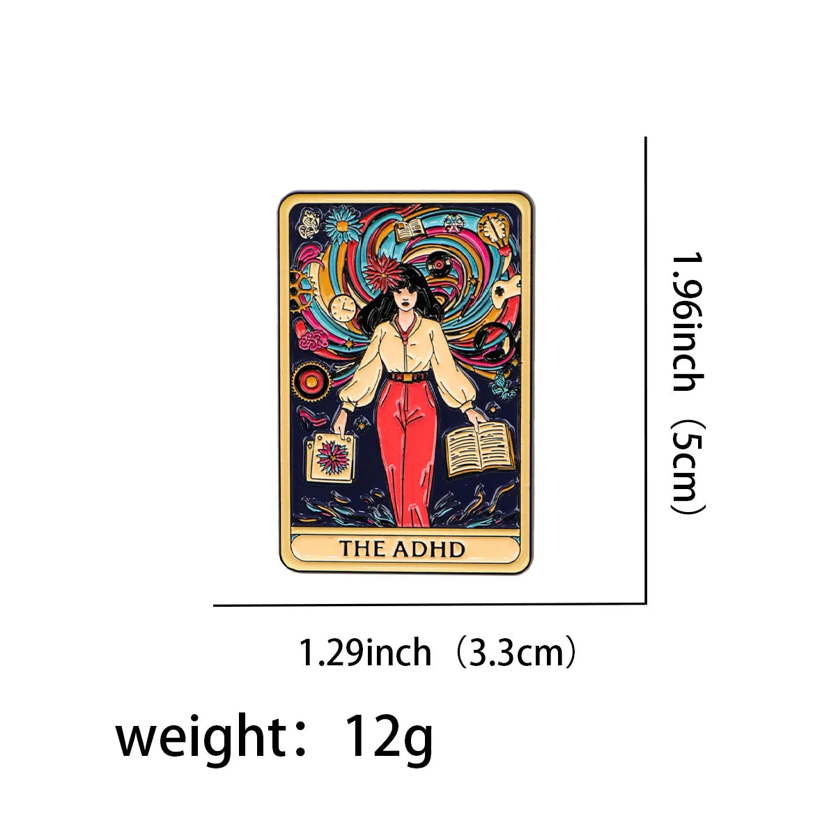 This ‘The ADHD’ tarot card style enamel pin badge is perfect for accessorising your jacket, bag, hat or backpack. It also makes a great funny novelty gift for your neurodivergent family, friends or colleagues.