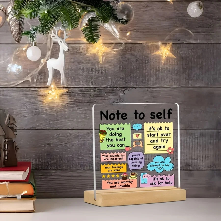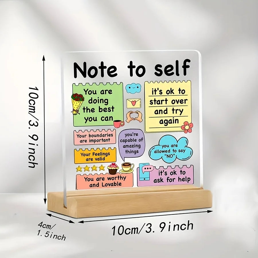 Inspirational Acrylic Quote Plaque Sign Gift with Wooden Base – Positive Affirmation Emotional Support Mental Health Desk Décor
