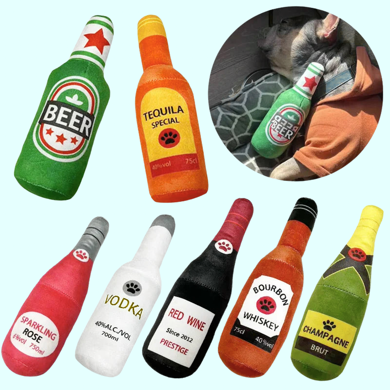 These alcohol shaped plush dog toys are the perfect mix of cute and cheeky. Shaped like popular alcoholic drinks and printed with playful imagery and text, they feature a soft, vocal (squeaky) inner core that engages your pup for hours of interactive fun.