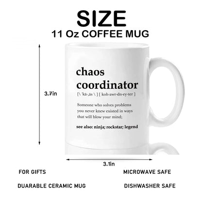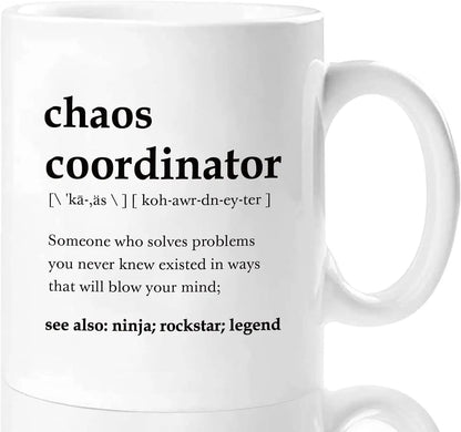 Chaos Coordinator Mug – Funny Novelty 11oz Ceramic Coffee Cup Boss Coworker Office Gift