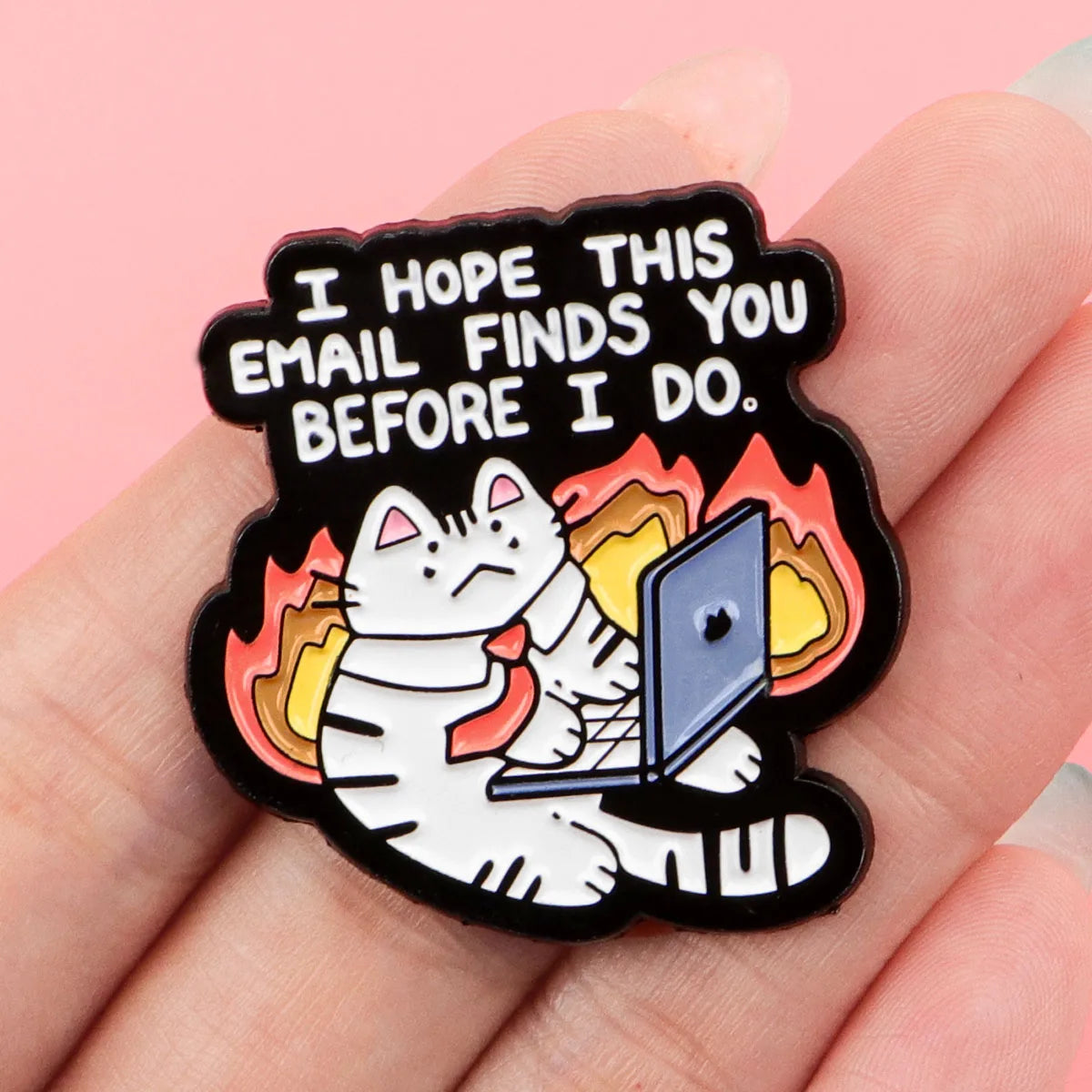 Funny Grumpy Angry Cat Enamel Pin Badge Brooch Office Humor Brooch Bag Jacket