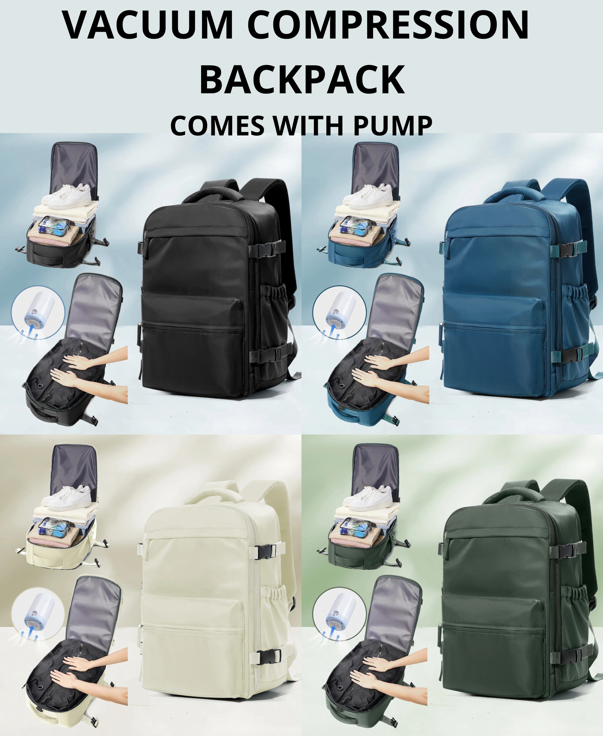 Expandable Vacuum Travel Luggage Backpack – Large Capacity Laptop Bag Men Women - Comes With Pump - Airback Smart Compression Backpack