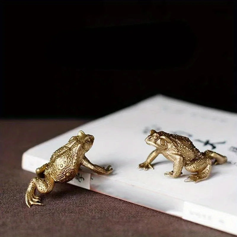 Mini Brass Copper Metal Toad Figurine – Desk Buddy Ornament Collectible