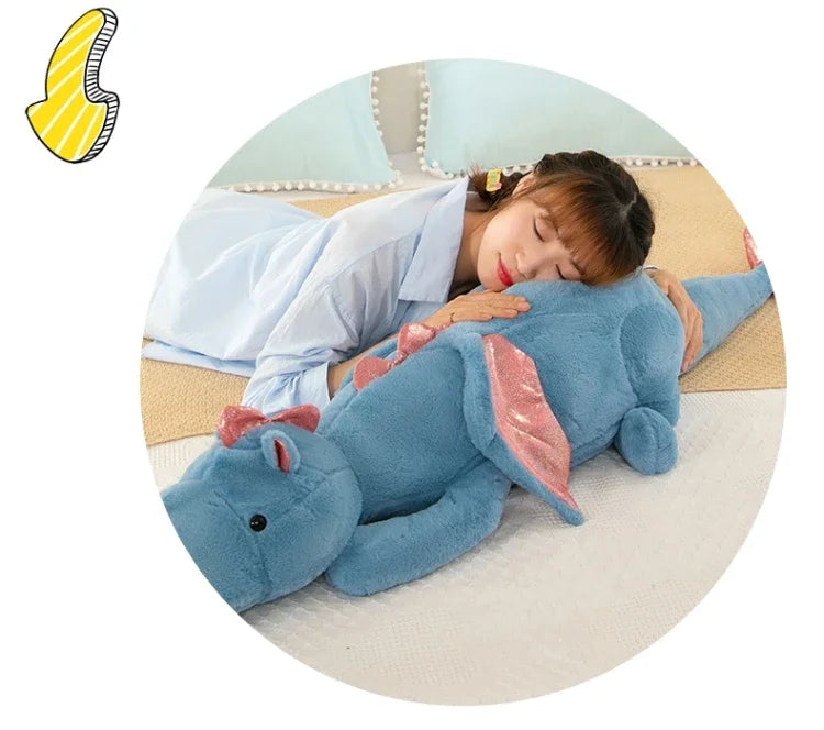 Bring home a cozy companion with this Flying Dragon Plush Pillow – a soft, huggable stuffed dinosaur available in five sizes (from 80cm to 150cm) and four enchanting colours: white, green, blue, and pink. Designed for cuddling, napping, or decorating, this long plush dragon is perfect for kids, teens, and anyone who loves imaginative soft toys.