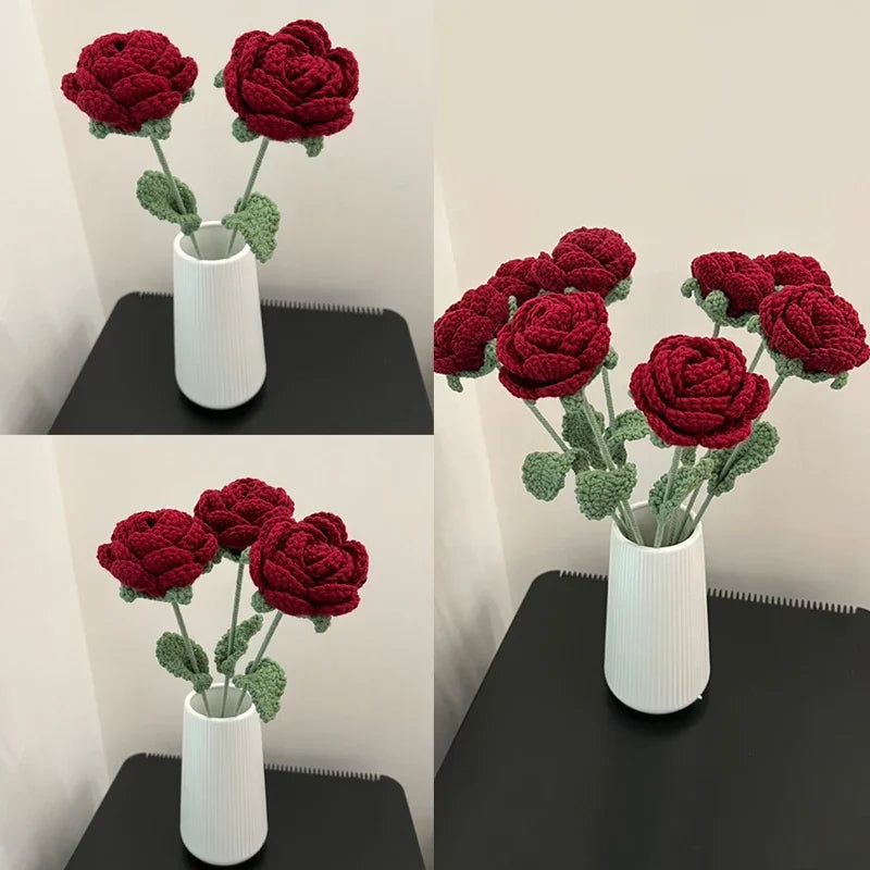 Knitted Rose Artificial Flower – Single-Stem Modern Decor for Gift, Home or Weddings